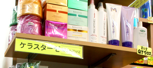 広い店内に、フレグランス、ヘアケア商品、化粧品が一面に並んでいます。